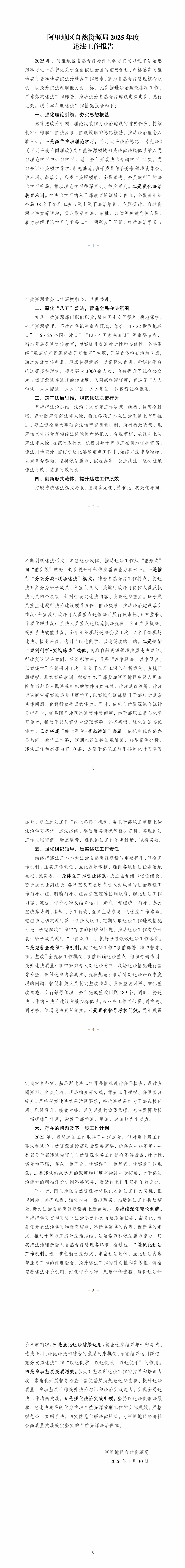 阿里地区自然资源局2025年度述法工作报告